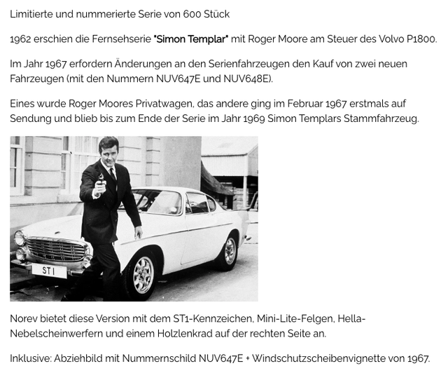 Volvo 1800S 1967 beige "Simon Templar" Norev 1:18